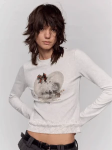 Be the first to review “A figure-hugging long-sleeved T-shirt with patchwork lace trim” Cancel reply