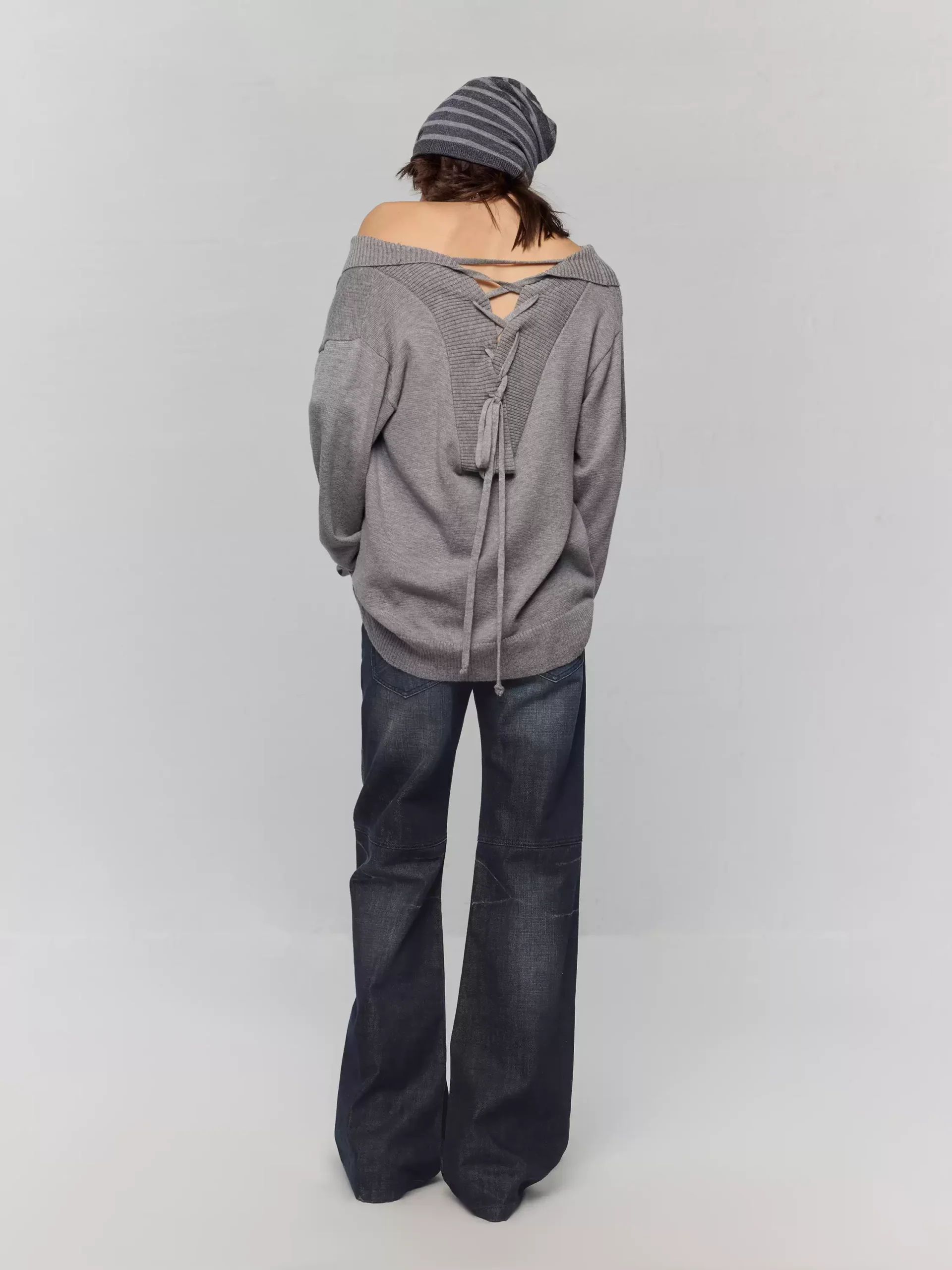 a knitted sweater with adjustable neckline strapsa knitted sweater with adjustable neckline strapsa knitted sweater with adjustable neckline strapsa knitted sweater with adjustable neckline straps