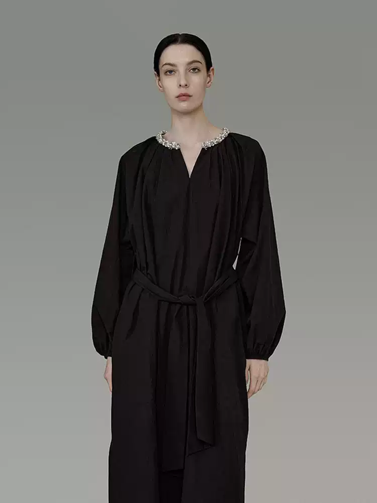 Be the first to review “A long-sleeved V-neck dress with a pleated design” Cancel reply