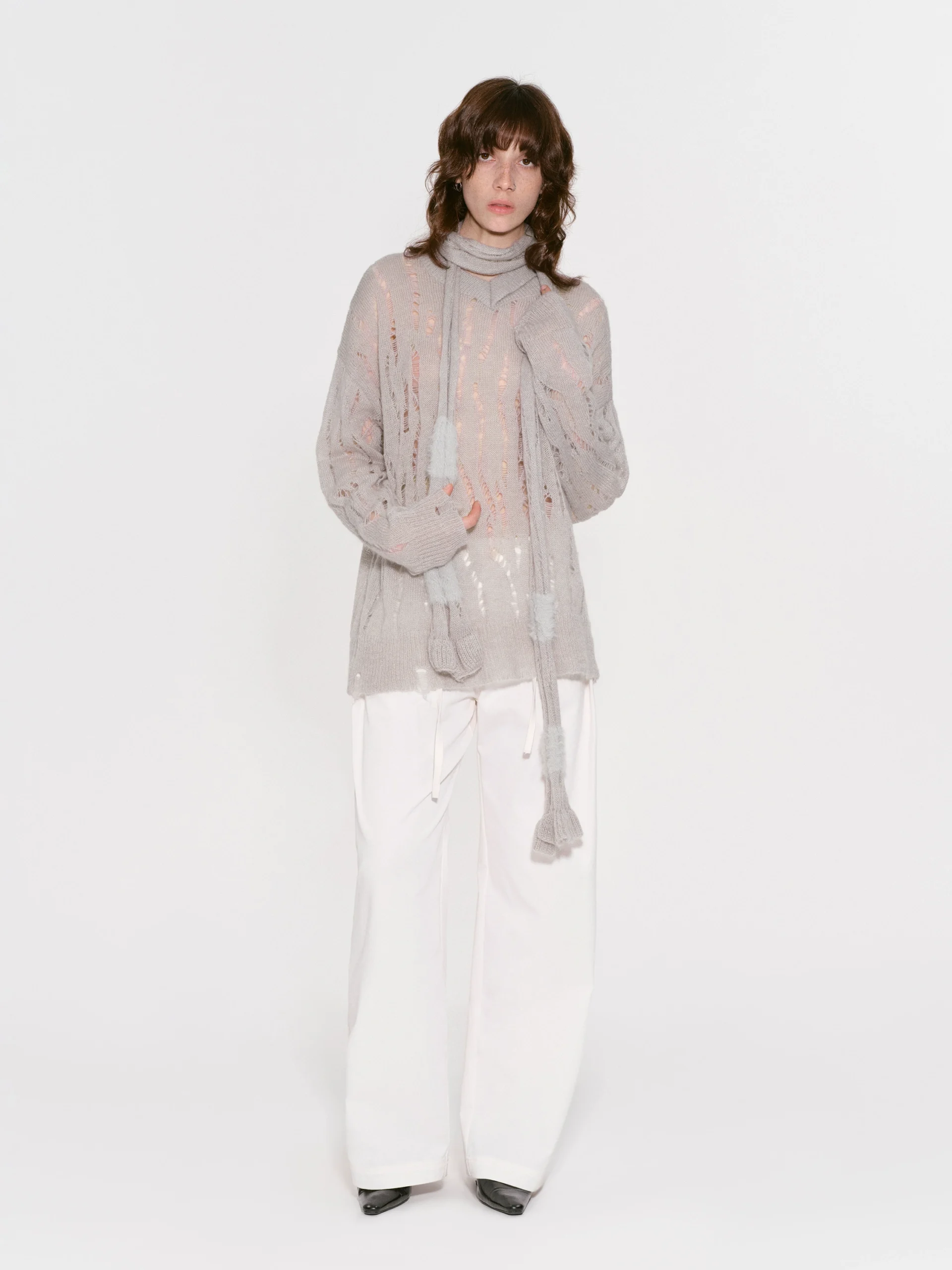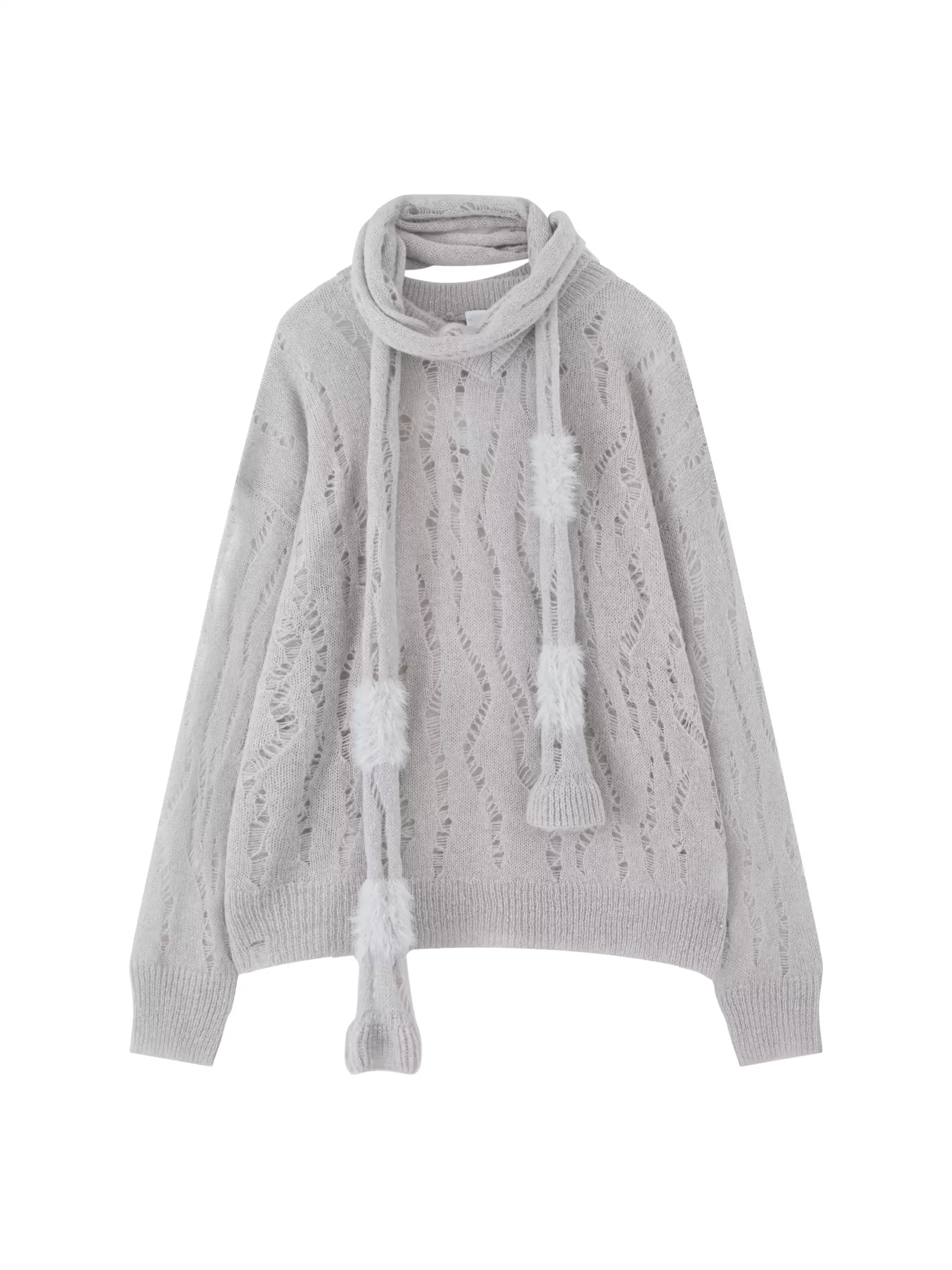a perforated and hollowed out knitted sweater with a scarfa perforated and hollowed out knitted sweater with a scarfa perforated and hollowed out knitted sweater with a scarfa perforated and hollowed out knitted sweater with a scarf