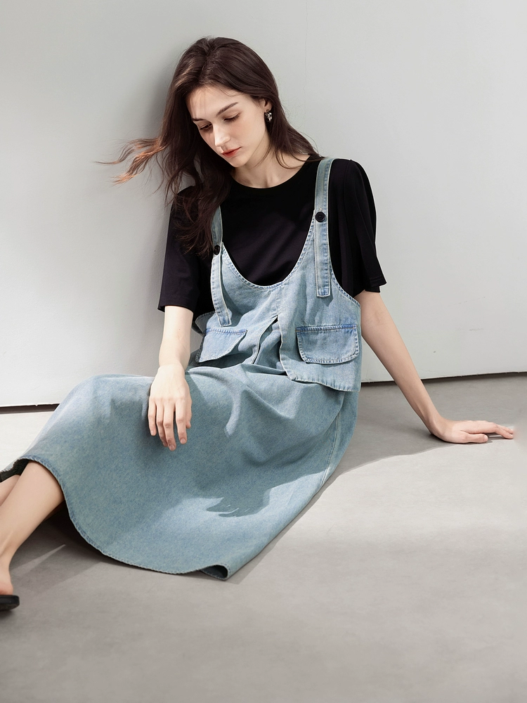 apel denim dress, chic all-season.