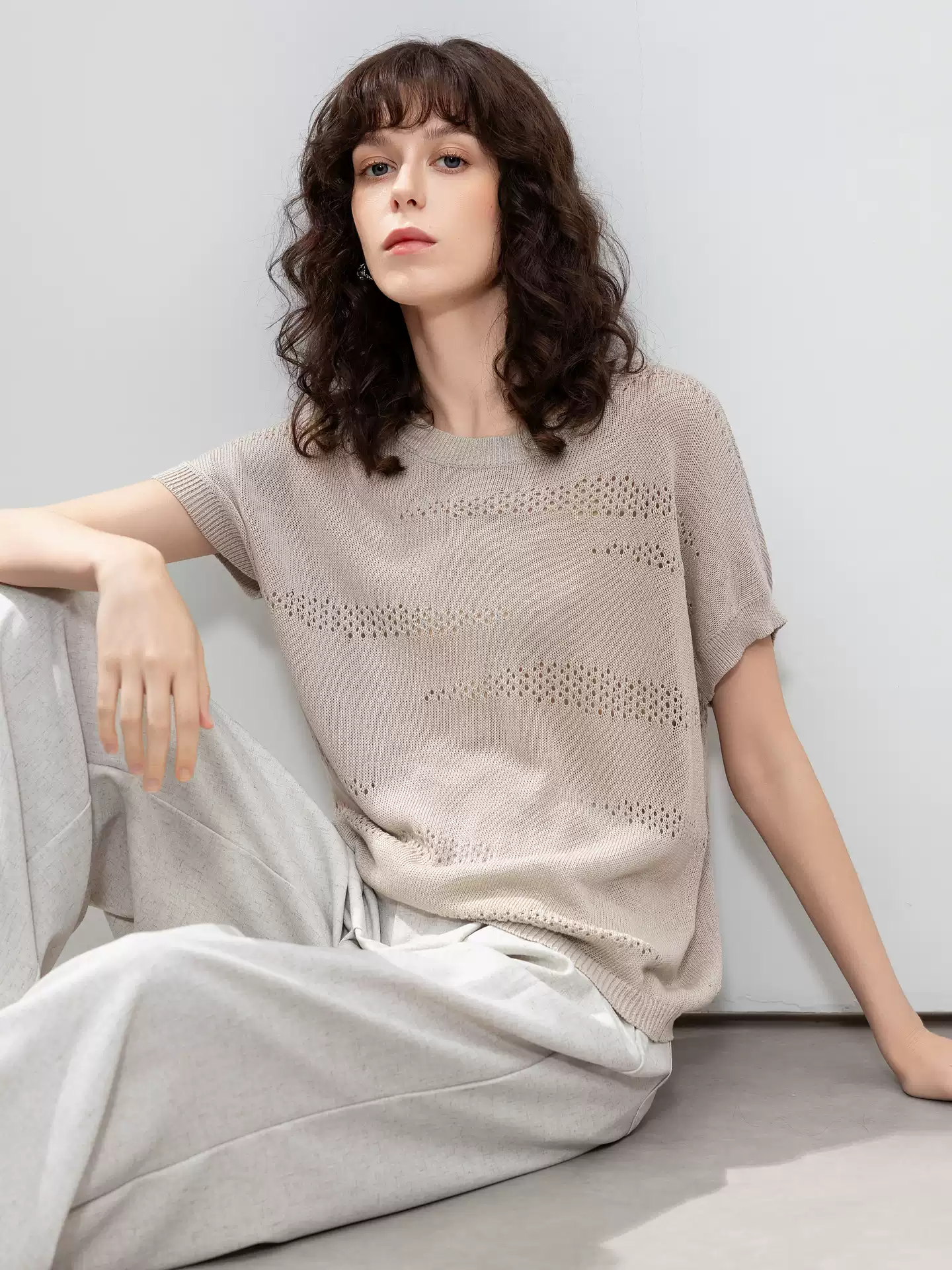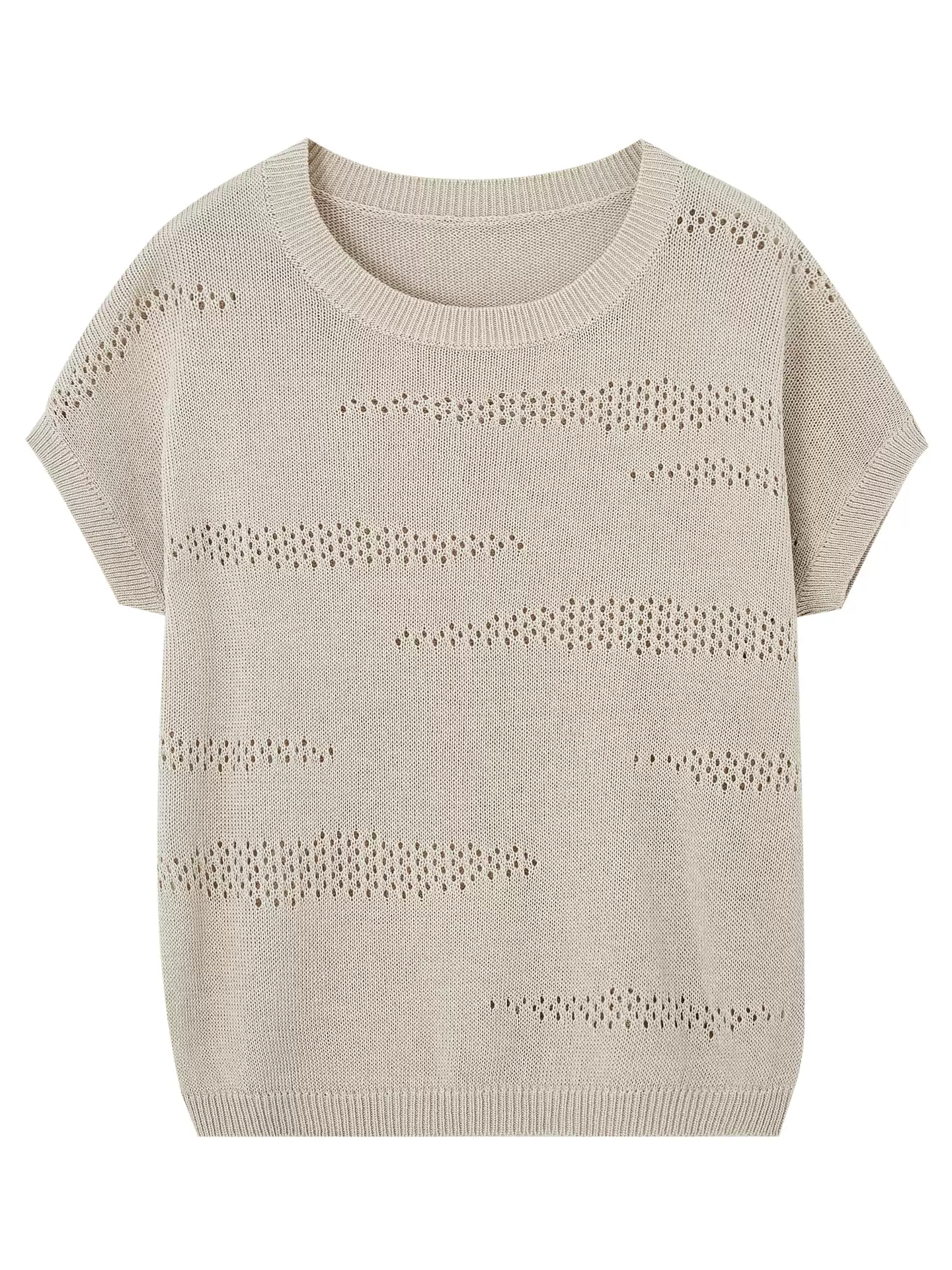 Perforated vintage knit, timeless appeal.
