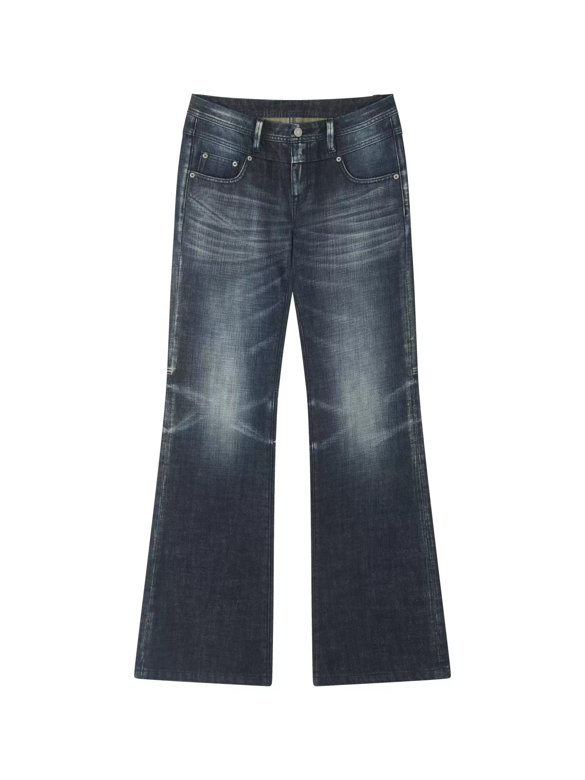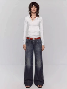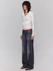 Disco-era denim, modern ease.