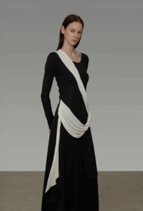 Be the first to review “Minimalist color-blocking ribbon long-sleeved dress” Cancel reply