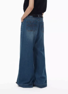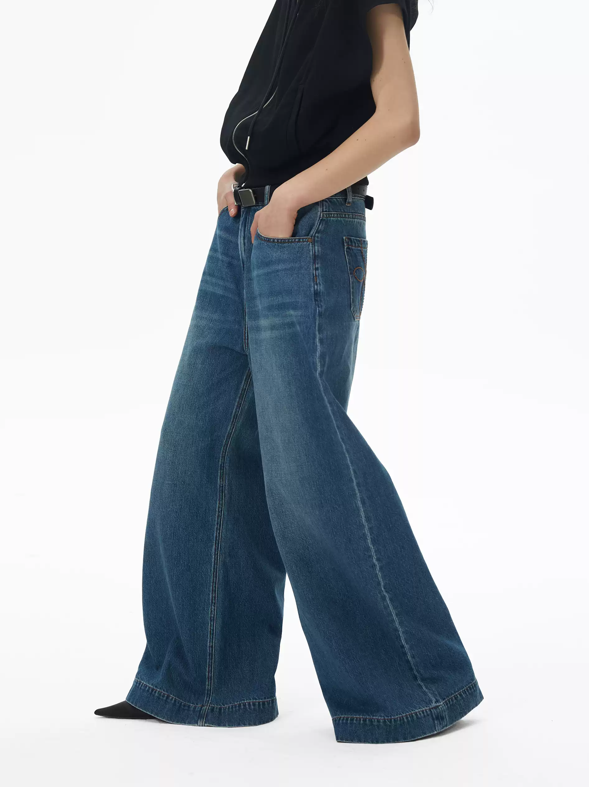 Embroidered retro wide-leg jeans.