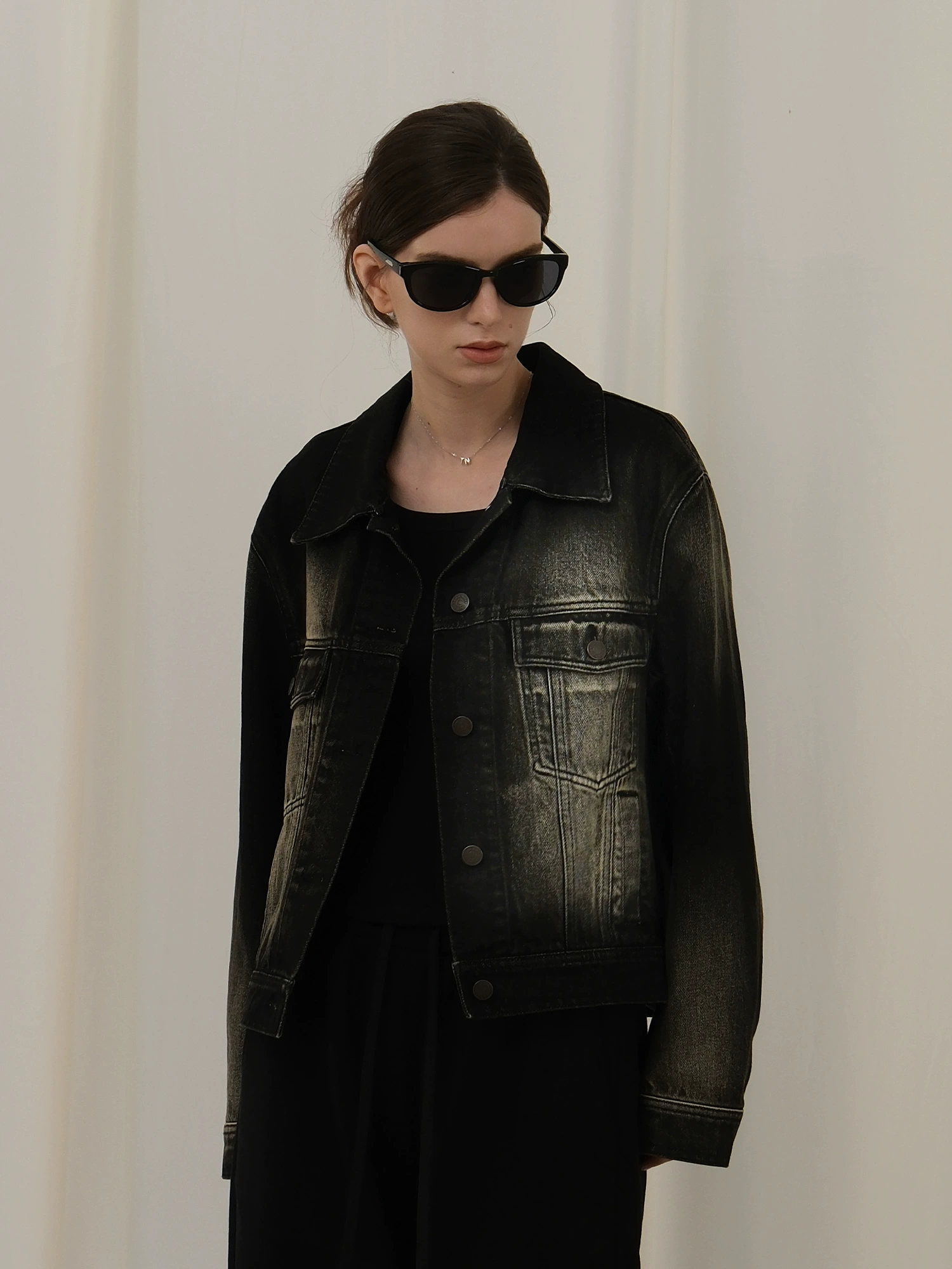 Cropped black denim – vintage reborn.